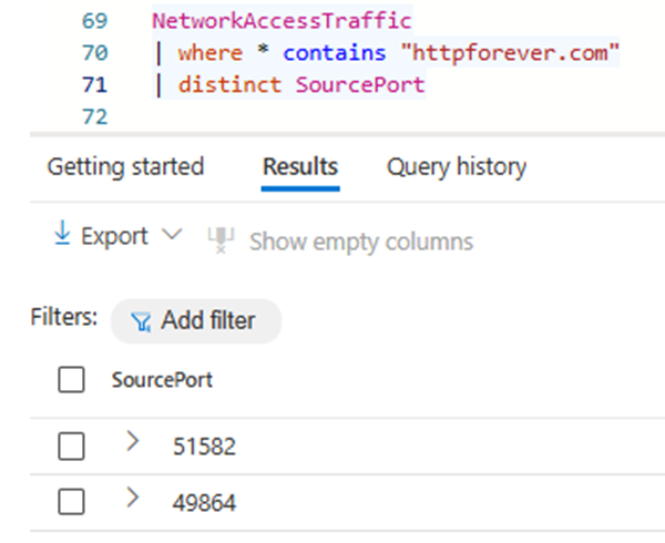 The fourth challenge is that the Source Port mapping in MDE and GSA is not reliable to work with. When looking at the Source Ports in MDE and GSA I could never find the same ports.