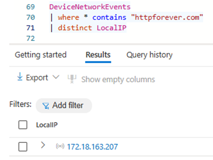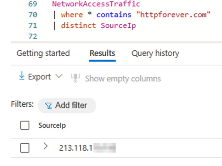 The first challenge with the 5-tuple correlation is that the SourceIP is not the same for GSA and MDE. When looking at the Source IP in GSA, we get the public IP Address of the device, while in MDE we get the private IP Address of the device.