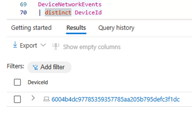 Luckily, the mapping between the Entra ID Device ID and the Defender XDR Device ID can be found in the DeviceInfo