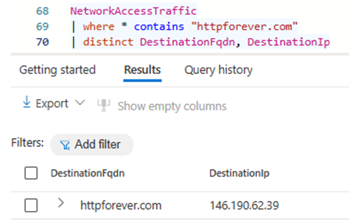 To fix this, we will be correlating on the Destination FQDN instead, since this is the same in both logs and is related to the Destination IP.