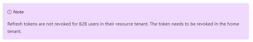 Another caveat to keep in mind is that you cannot revoke tokens for B2B users in the resource tenant, this needs to be done in the home tenant of the B2B user.