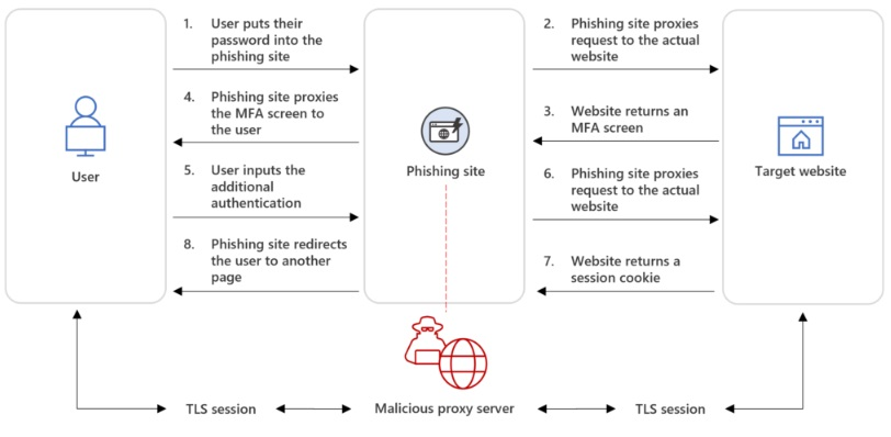 During access token stealing, an adversary tricks a user into visiting a malicious website which basically proxies the real Microsoft website. By entering credentials in the Microsoft login page through the malicious website, the attack is able to steal not only the password, but also the access token that is being used.