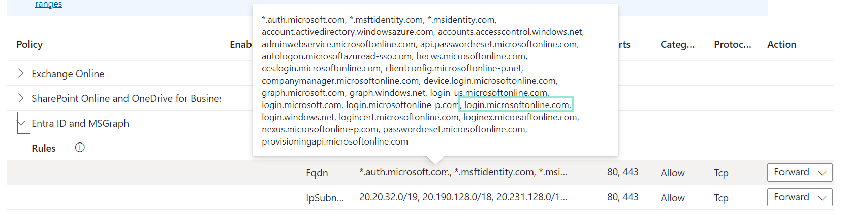 An interesting thing I noticed is that the destination FQDN’s of the application do not need to be acquired by the Microsoft profile for compliant network restrictions to work. Since the access token request is sent to the ‘Entra ID and MSGraph’ endpoints (login.microsoftonline.com), any application integrated with Entra ID conditional access can be used to require compliant networks, since the login.microsoftonline.com FQDN is included in the Microsoft profile.