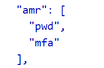 One of the interesting claims of an access token is the amr claim. This claim contains the authentication method that was used, and tells you if the user for example used MFA to authenticate. In the example below, you can see that I authenticated to a service using my password and MFA.