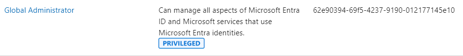 Both claims have the ‘b79fbf4d-3ef9-4689-8143-76b194e85509’ ID, which is the default for all users. But when you search for the ‘62e90394-69f5-4237-9190-012177145e10’ ID in the Microsoft documentation, you will find that this is the ID for the Global Administrator role: