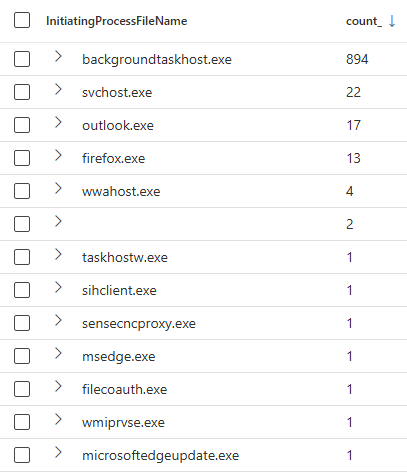 17| summarize count() by InitiatingProcessFileName