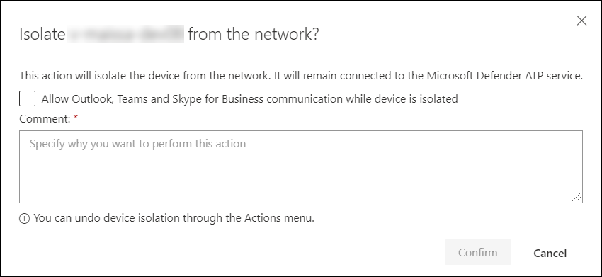 For Windows 10 clients version 1709 or later and Windows 11 clients, you can also choose to enable Outlook, Microsoft Teams, and Skype for Business connectivity (a.k.a ‘Selective Isolation’). This can help in scenarios where the end-user still needs to be able to reach out to colleagues during the device isolation.