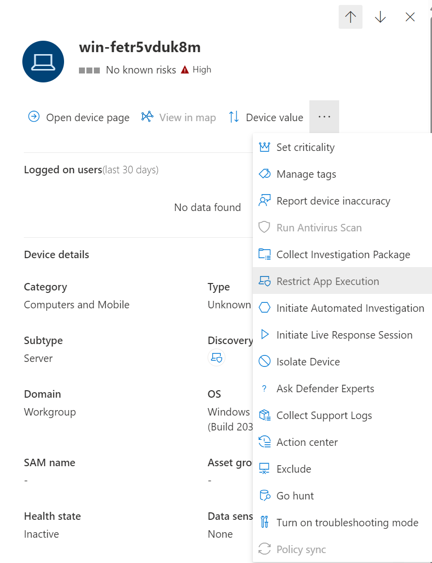 If you want to lock down a device and prevent subsequent attempts of potentially malicious programs from running, you can use the ‘Restrict app execution’ feature in Defender for Endpoint. This feature uses Windows Defender Application Control code integrity policies, to only allow files to run if they are signed by a Microsoft-issued certificate.