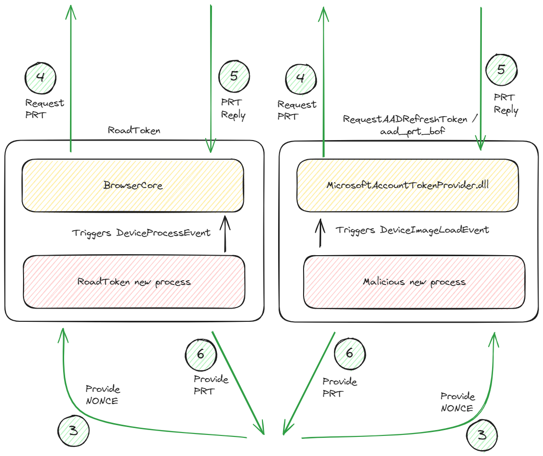 The easiest way to detect a malicious token request on a device is by flagging abuse of BrowerCore. When the NONCE is provided in stdin
