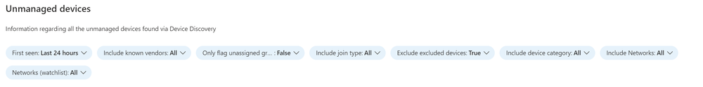 - Only flag unassigned group - In Defender XDR you are able to group managed and unmanaged devices in groups. When you set this filter to ‘True’, you will only see devices which are not included in a device group.