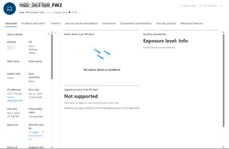 You will notice that the DeviceName, DeviceId, and IP address is a clickable link. When you click on the DeviceName or DeviceId you will be redirected to the Device page in Defender XDR: