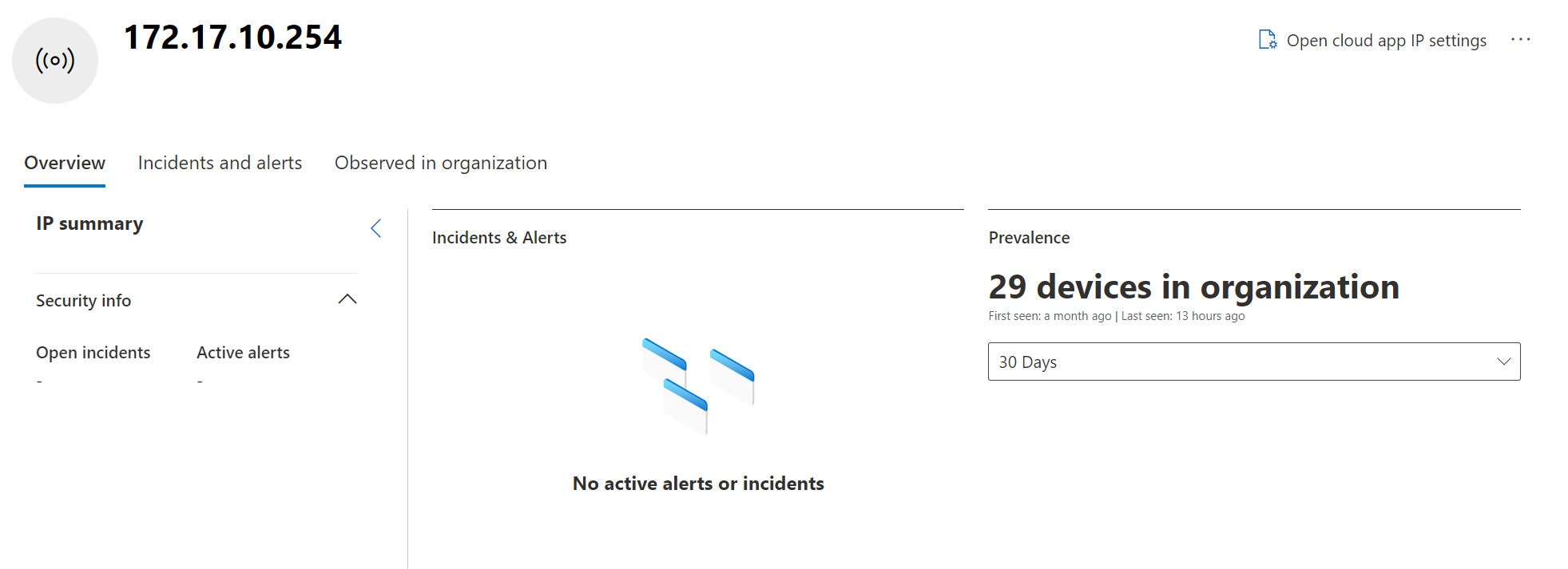 When you click on the IP address, you will be redirected to the IP address page in Defender XDR: