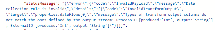 When your output scheme is not correct according to the CommonSecurityLog table, you can get errors like the one below.