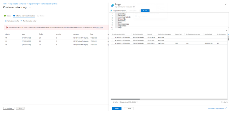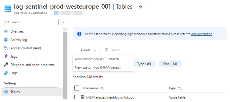 This will eventually create a new custom table in your Log Analytics workspace. Normally you do not need this table, which is why we will delete it afterwards.