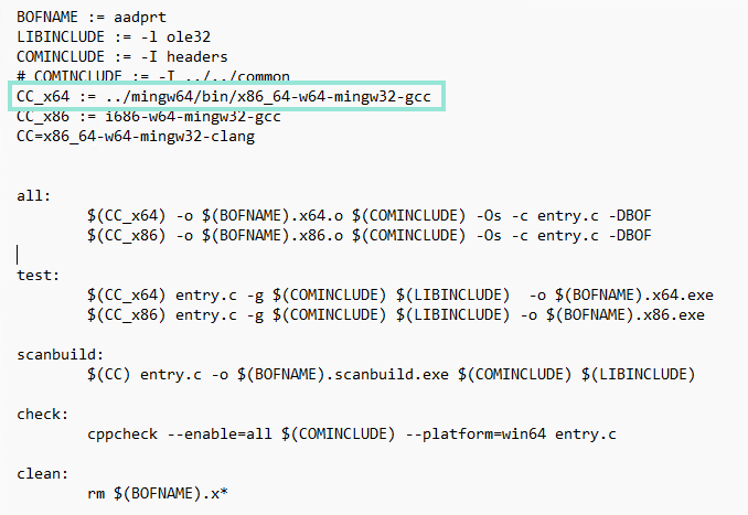 file of the ‘aad_prt_bof’ project and change the path of thex86_64-w64-mingw32-gcc