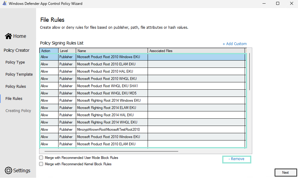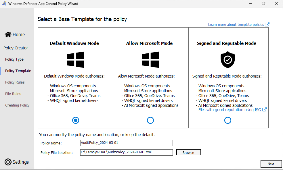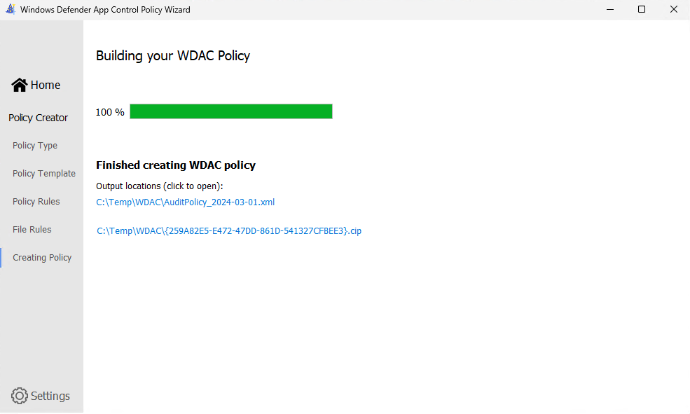 - When clicking ’next’, the WDAC policy will be exported in the output folder you specified earlier.